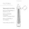 • Long-lasting membrane microfilter will last up to 4,000 L (1,000 gallons) of water, that’s enough drinking water for one for over 5 years