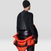 - Suspender system is adjustable, detachable at front, with 3 sternum/cross body straps on an adjustable daisy chain