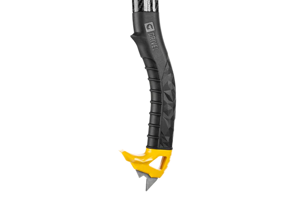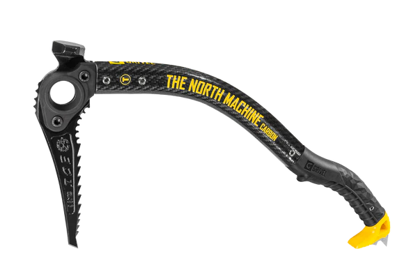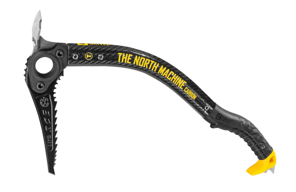 The North Machine is a technical ice axe designed for high-level mountaineering, north faces and ice climbing. Very versatile, it will follow the most demanding alpinist in his/her adventures. The Vario system allows the choice of various blades and various accessories, suitable for every need. Carbon composite (aluminum + carbon) shaft to save weight, and G bone shape with lateral grooves to allow greater strength and rigidity with a lower thickness. It has an ergonomic handle and its shape helps protect your fingers. Widia tip